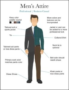 Attached you will find two general ideas – one for the man, one for the woman – on good dressing styles. (We don’t need to follow these exactly as they are written, but they are general ideas to trend towards) The short version is this: